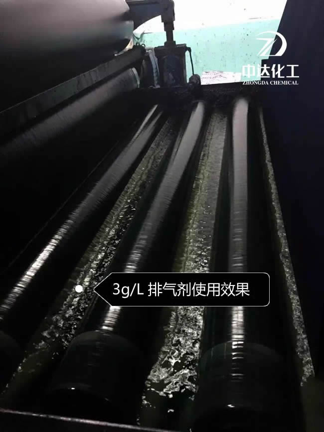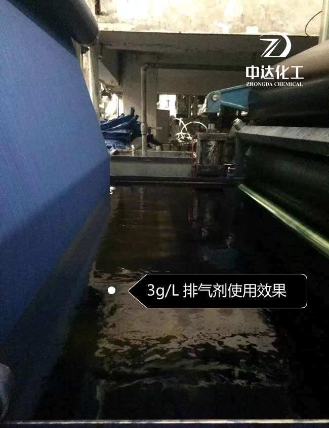 能使染液像水面一樣平凈,對于前處理欠佳的紗線,由于其毛效不均勻,對染料的親和性有差異可導致色花色點。而排氣劑的優(yōu)異潤濕性滲透性可改變紗線的毛效,從而改善親和力。也就起到勻染的效果。再有排氣劑平衡解水電位的作用。中達水劑ZD-105使用可使硬水染色和長時間附水染色的工藝起提高顏色亮度的作用。如使用在上漿上可使?jié){液無起泡性,減少或避免漿斑的產(chǎn)生。綜上所述,排氣劑是新型牛仔染色中不可缺少的新型助劑。